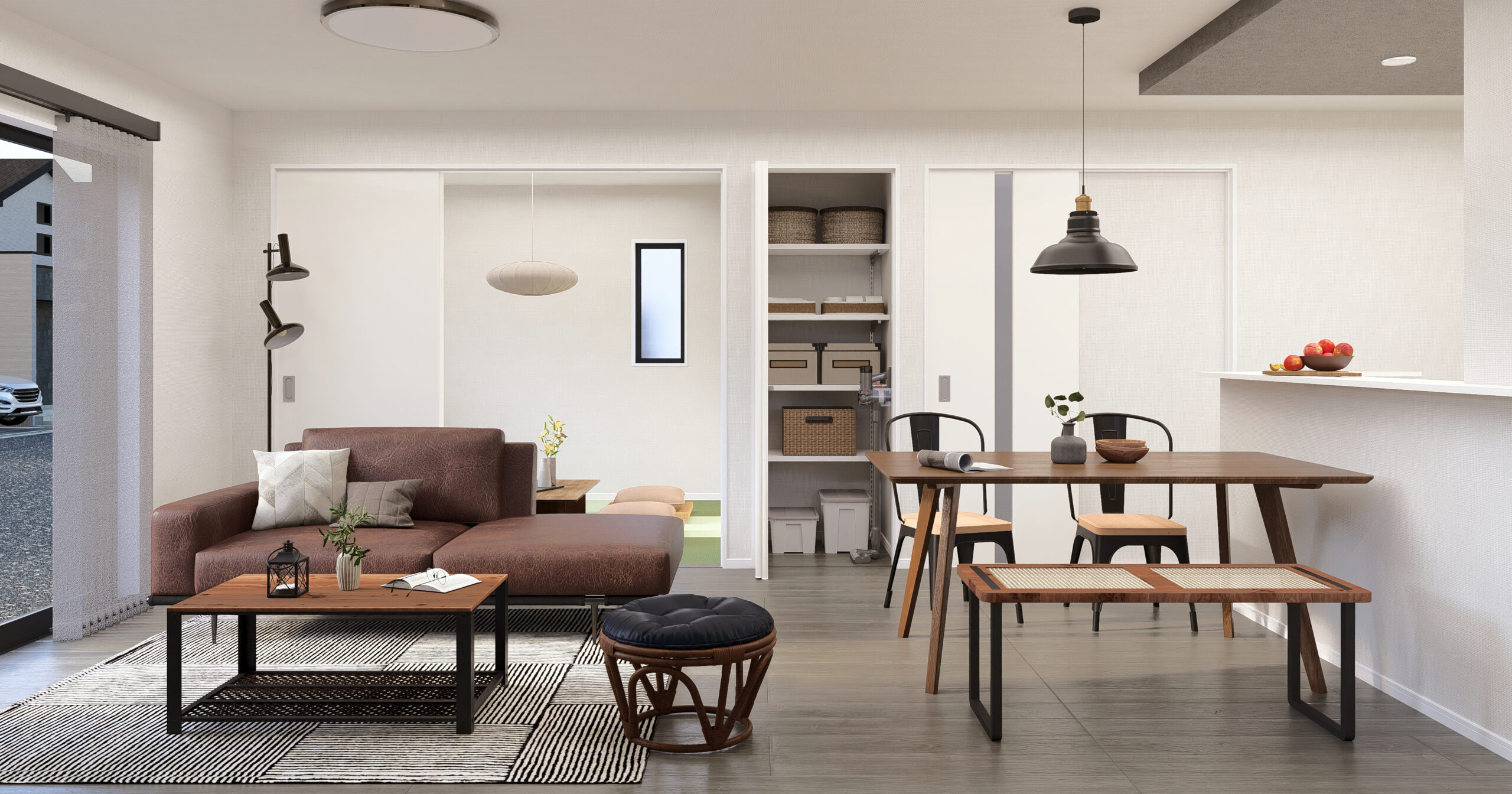 LDKは約16帖で家族が自然と集まる設計。駐車2台可能で来客時も安心。